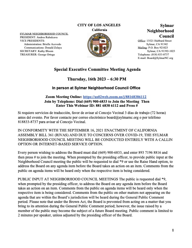 In-person at the Sylmar Neighborhood Council Office - 13521 Hubbard St. Sylmar, CA 91342