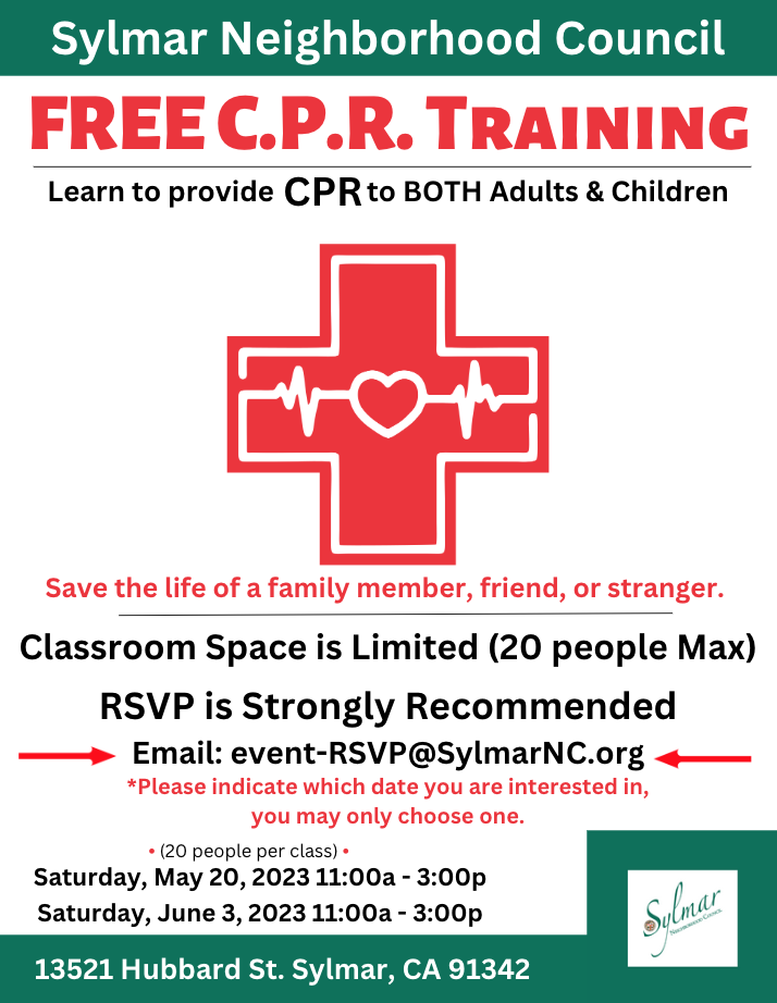• Limited Space - FREE CPR Class • Provided by the Sylmar Neighborhood Council.