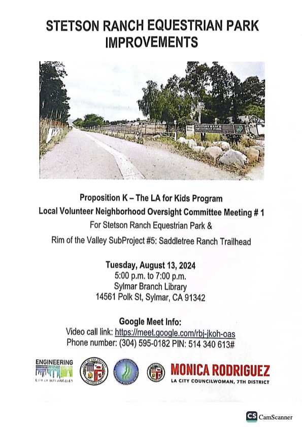 For Stetson Ranch Equestrian Park & Rim of the Valley SubProject #5: Saddletree Ranch Trailhead