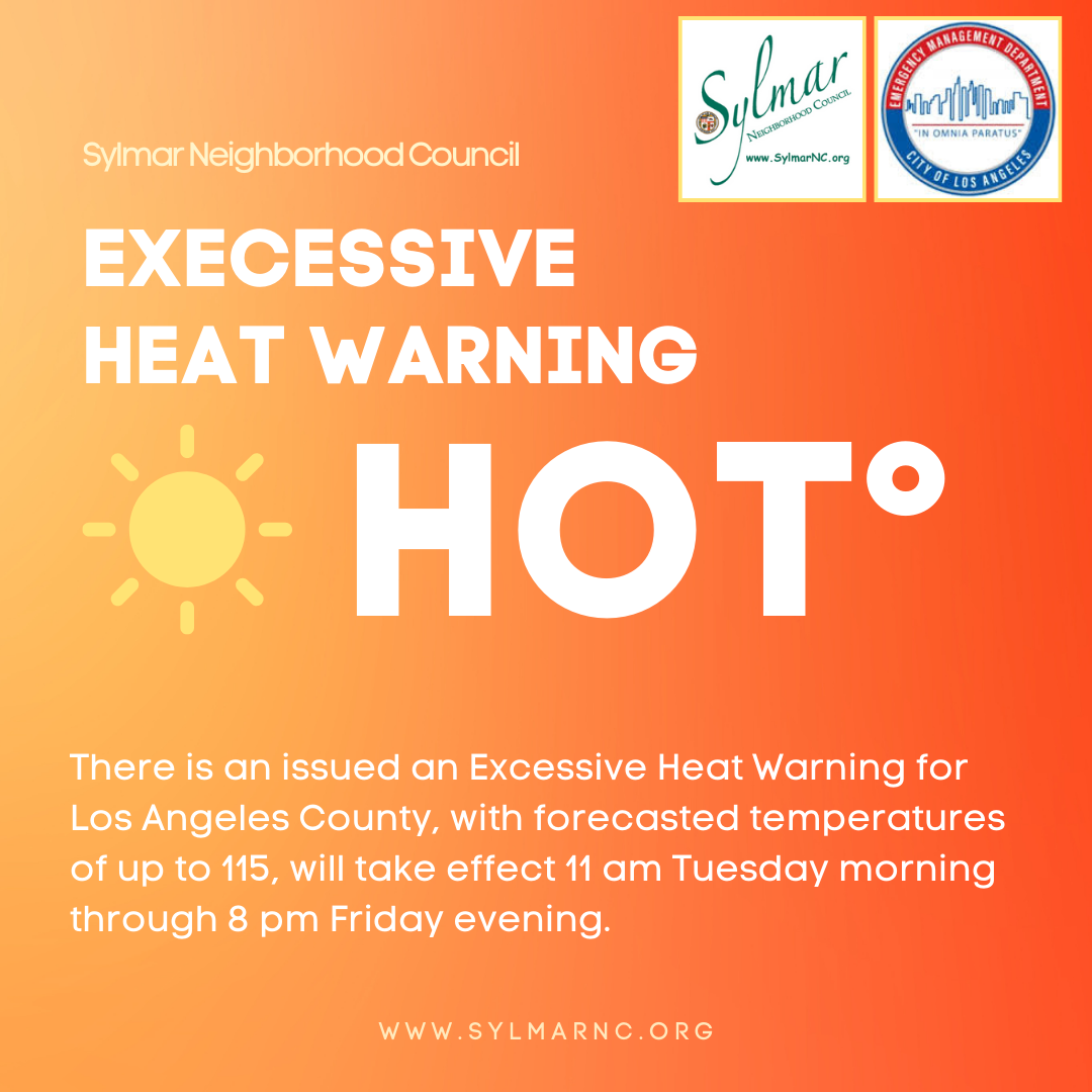 There is an issued an Excessive Heat Warning for Los Angeles County, with forecasted temperatures of up to 115, will take effect 11 am Tuesday morning through 8 pm Friday evening.
