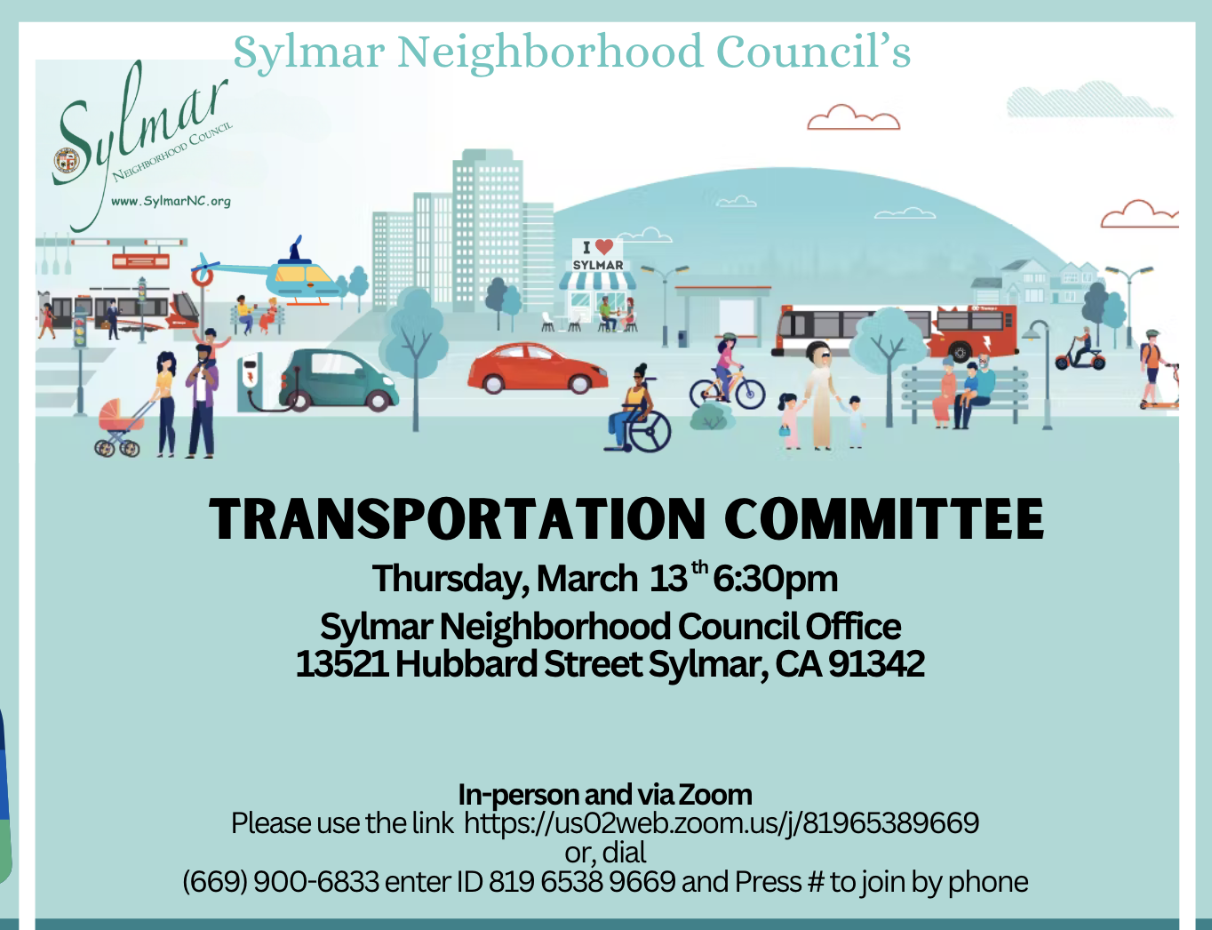 We offer several ways that you can watch or participate in the meeting. You can join in person at the Sylmar Neighborhood Council Office -13521 Hubbard Street, Sylmar, CA 91342