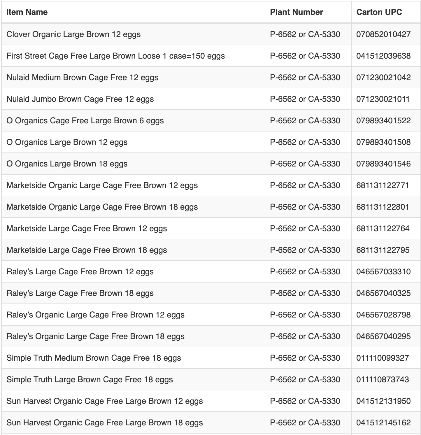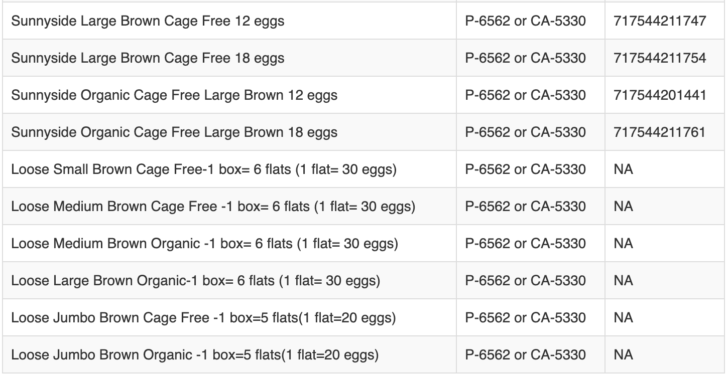 RECALL - Eggs - brown cage-free, and brown certified organic