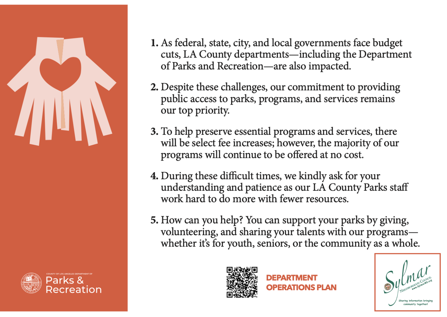 The Los Angeles County Department of Parks & Recreation is significantly affected by Federal, State, and local budget cuts.