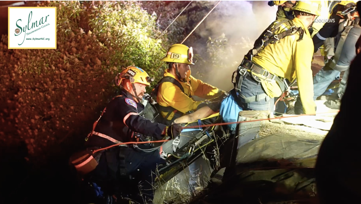 Rescue crews respond to a woman injured in Sylmar on July 29, 2025. (KNN News)