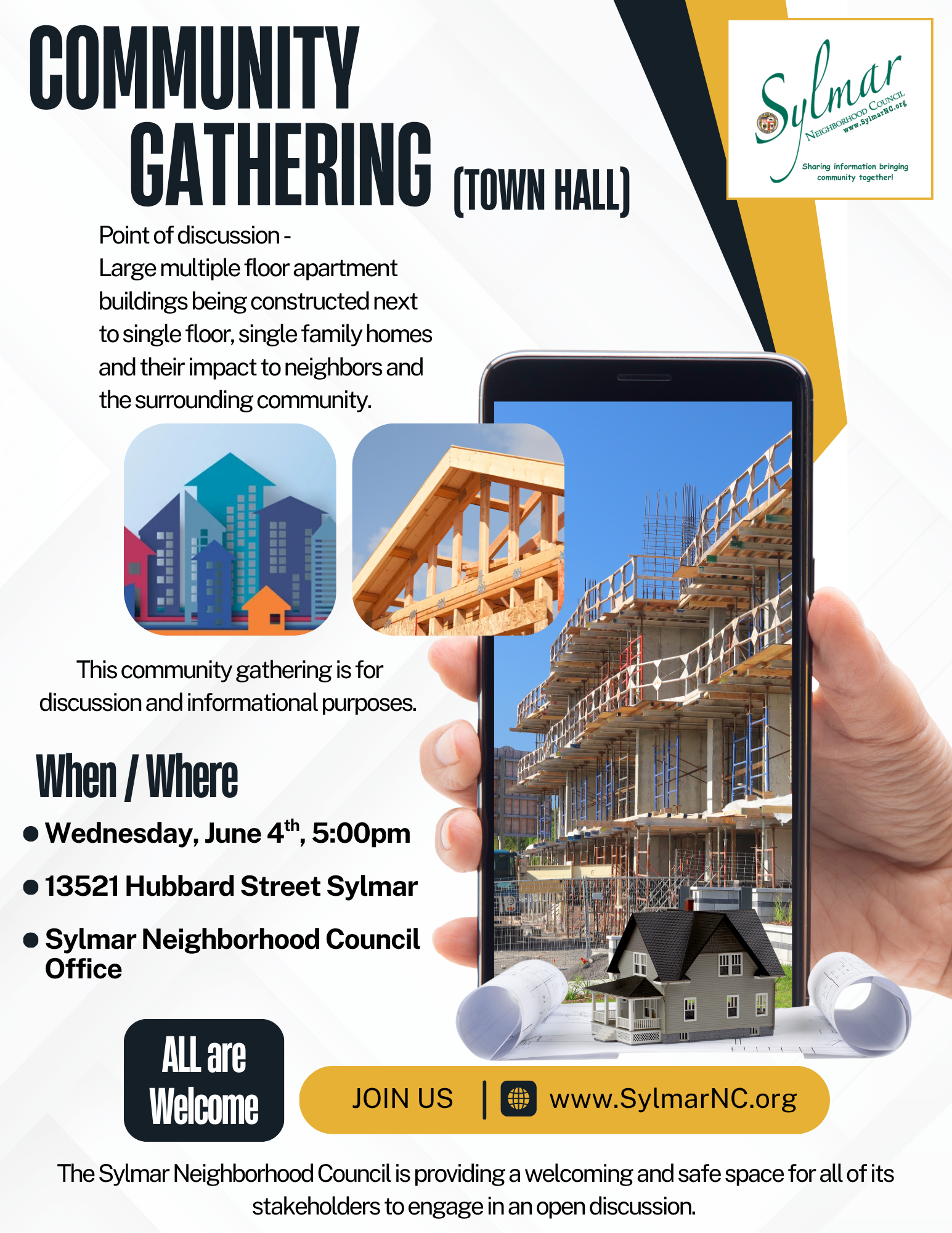 The SNC is providing a safe and open space for community members and stakeholders to gather and have a discussion on the community impact of mid-sized apartment buildings in some neighborhoods that are mostly single-story/family homes.