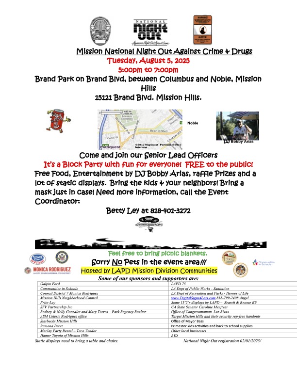 Benefiting Mission Community Police Council (501c3 20-2736279)