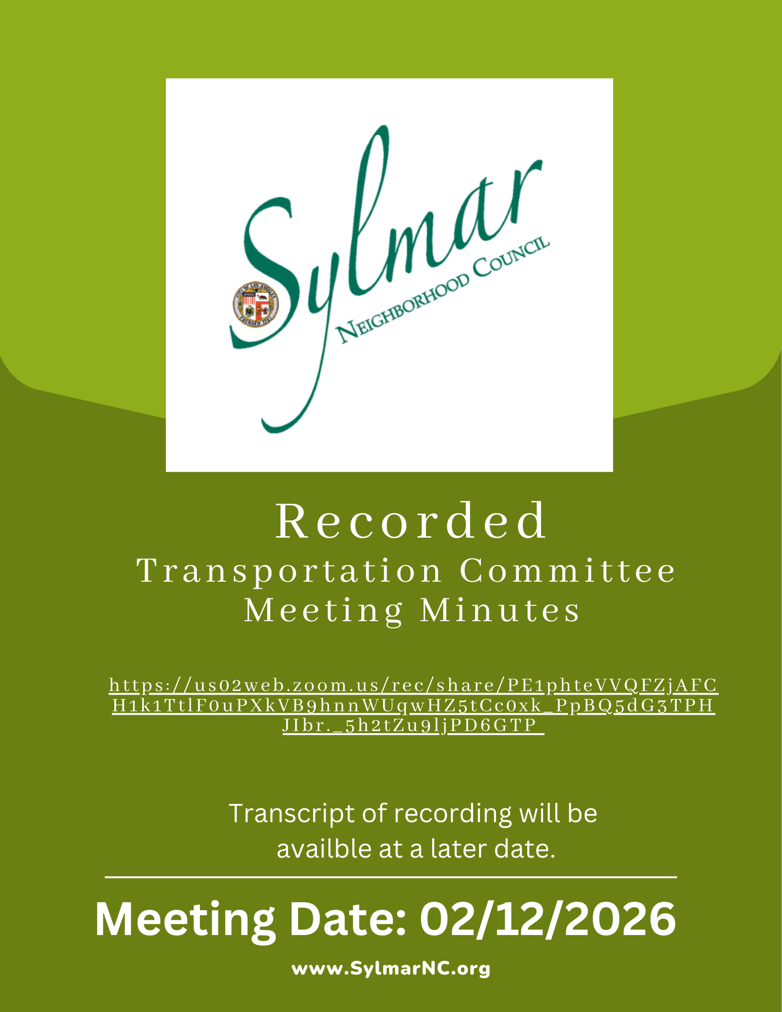 The meeting Location is at the Sylmar Neighborhood Council Office located at 13521 Hubbard Street, Sylmar California 91342 - at the Intersection of Hubbard and Gladstone Streets, near the Yum-Yum Donuts.