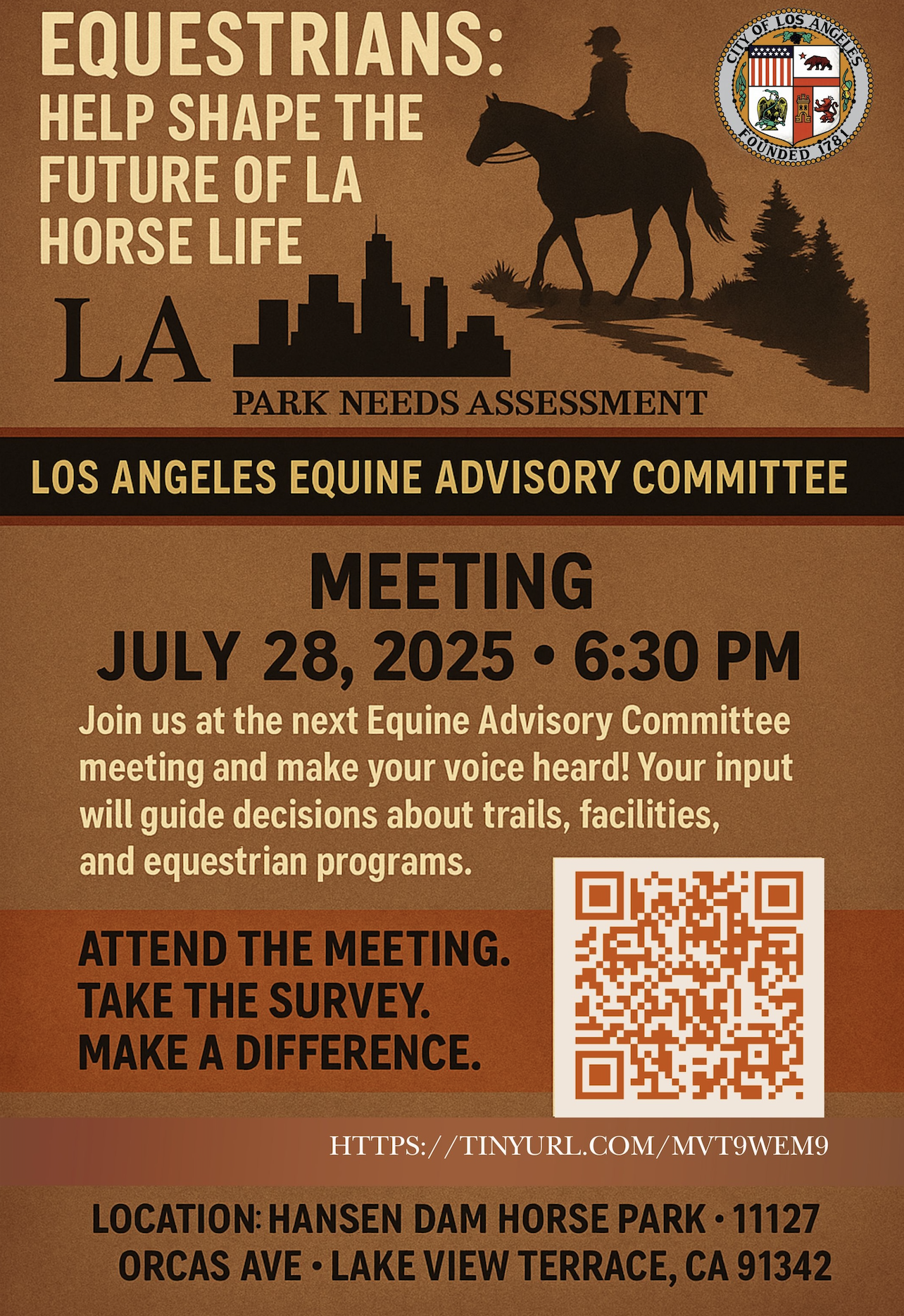 The Los Angeles Equine Advisory Committee (EAC) works with City Departments to address equine issues in the City of Los Angeles.