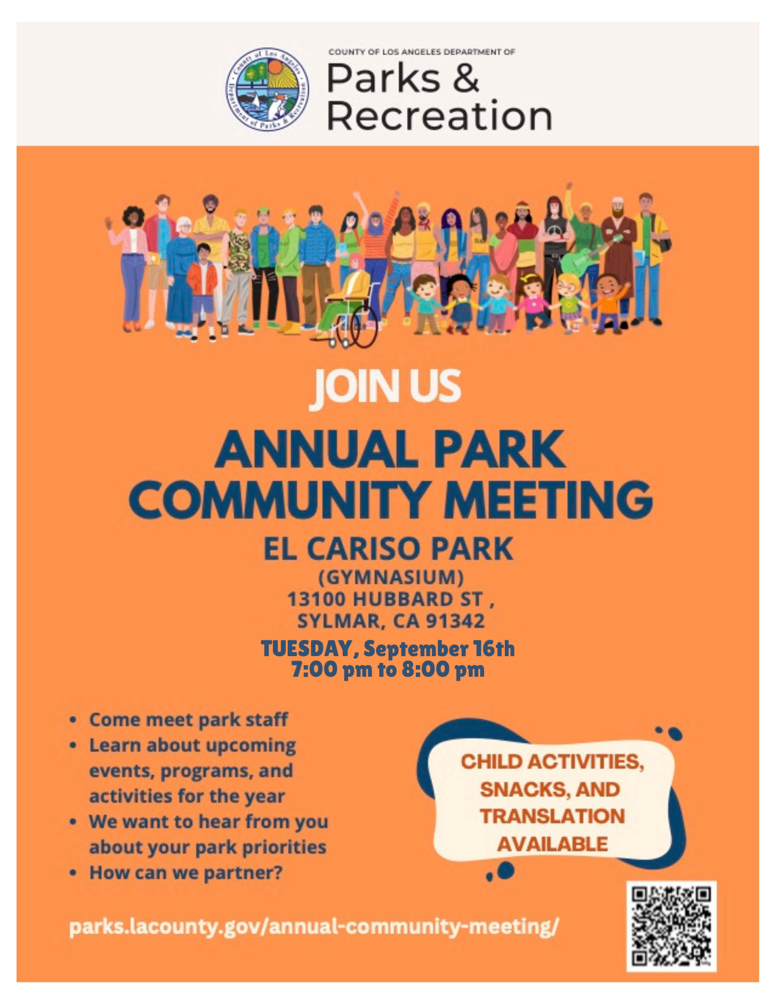 ANNUAL PARK COMMUNITY MEETING AT EL CARISO PARK