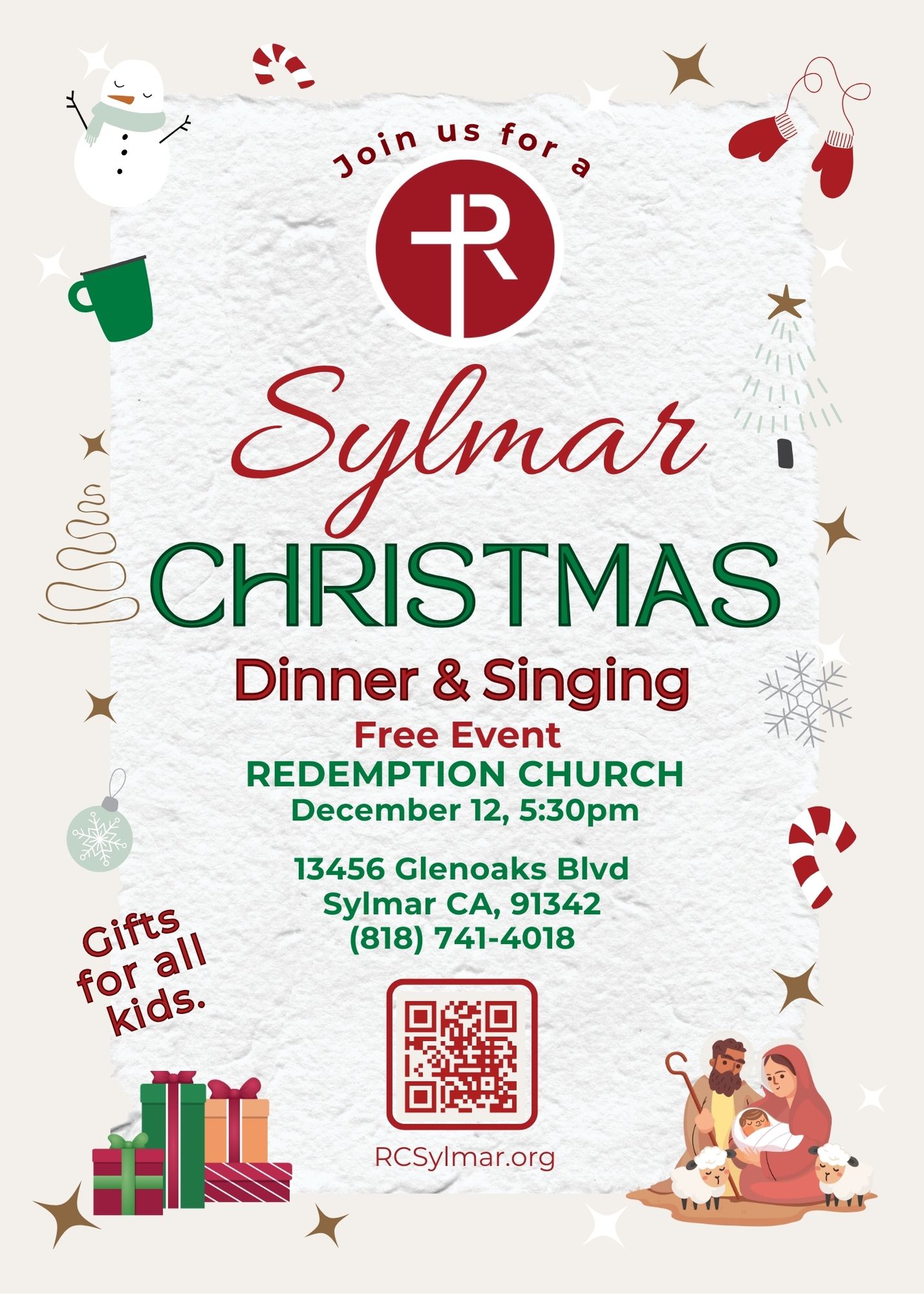 ‘A Sylmar Christmas’ is a free event designed to bless families across our community. The evening will include a complimentary dinner, free gifts for children, Christmas music, a Christmas Devotional and opportunities for neighbors to connect in a warm, family-friendly environment. Our desire is simply to serve, encourage, and care for the families of Sylmar during the holiday season.