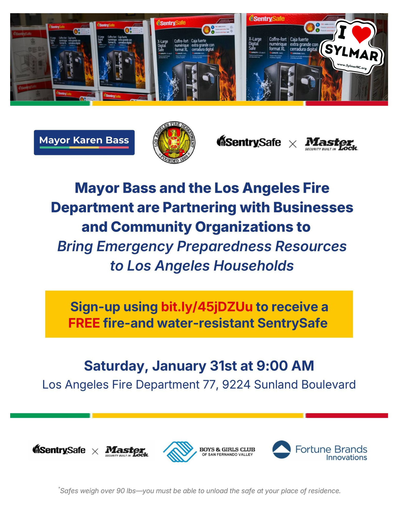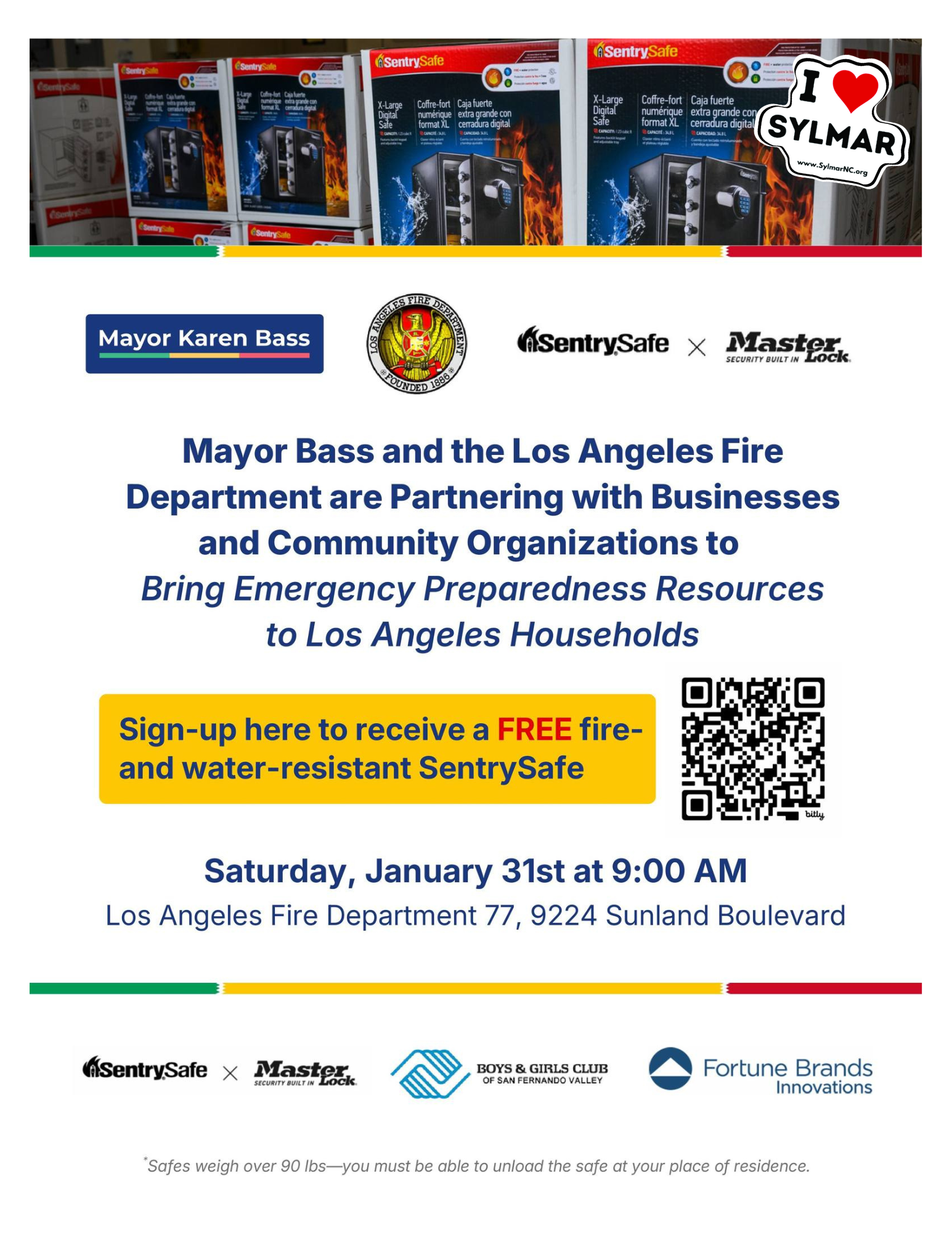 Sentry Safe giveaway, in collaboration with Mayor Karen Bass, the LA Fire Department, and the Boys & Girls Club of San Fernando Valley!