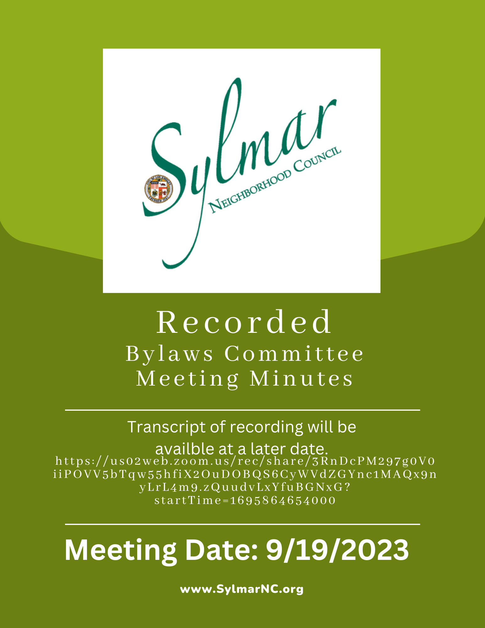 The Second Wednesday of Every Month Starting at 6:30pm: Meeting Location is at the Sylmar Neighborhood Council Office located at 13521 Hubbard Street, Sylmar California 91342 - at the Intersection of Hubbard and Gladstone Streets, near the Yum-Yum Donuts.