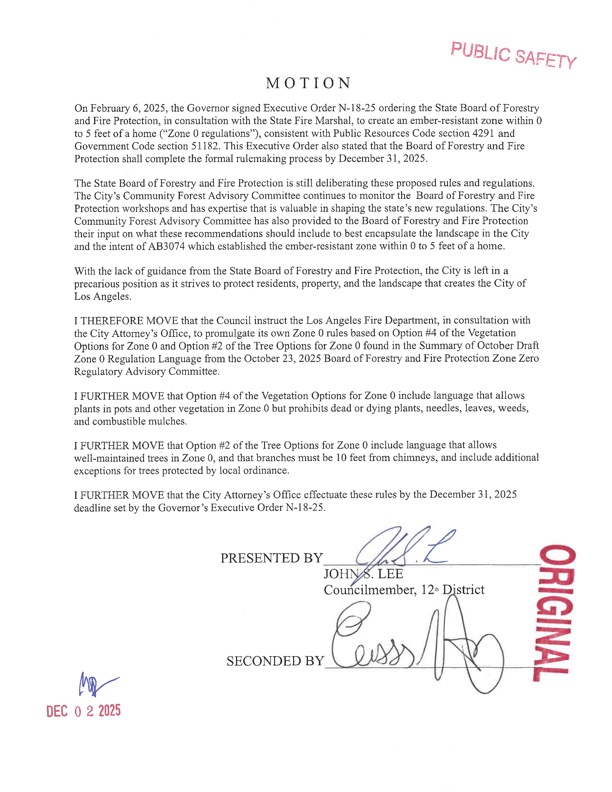 LA City Council Members, on January 13, 2026, unanimously voted in favor of the following motion: