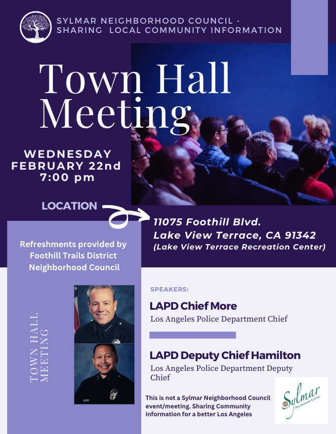 This is not a Sylmar Neighborhood Council event/meeting. Sharing Community information for a better Los Angeles
