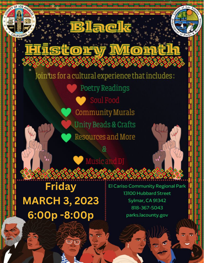 El Cariso Park celebrates Black History Month tomorrow evening from 6 pm-8 pm!