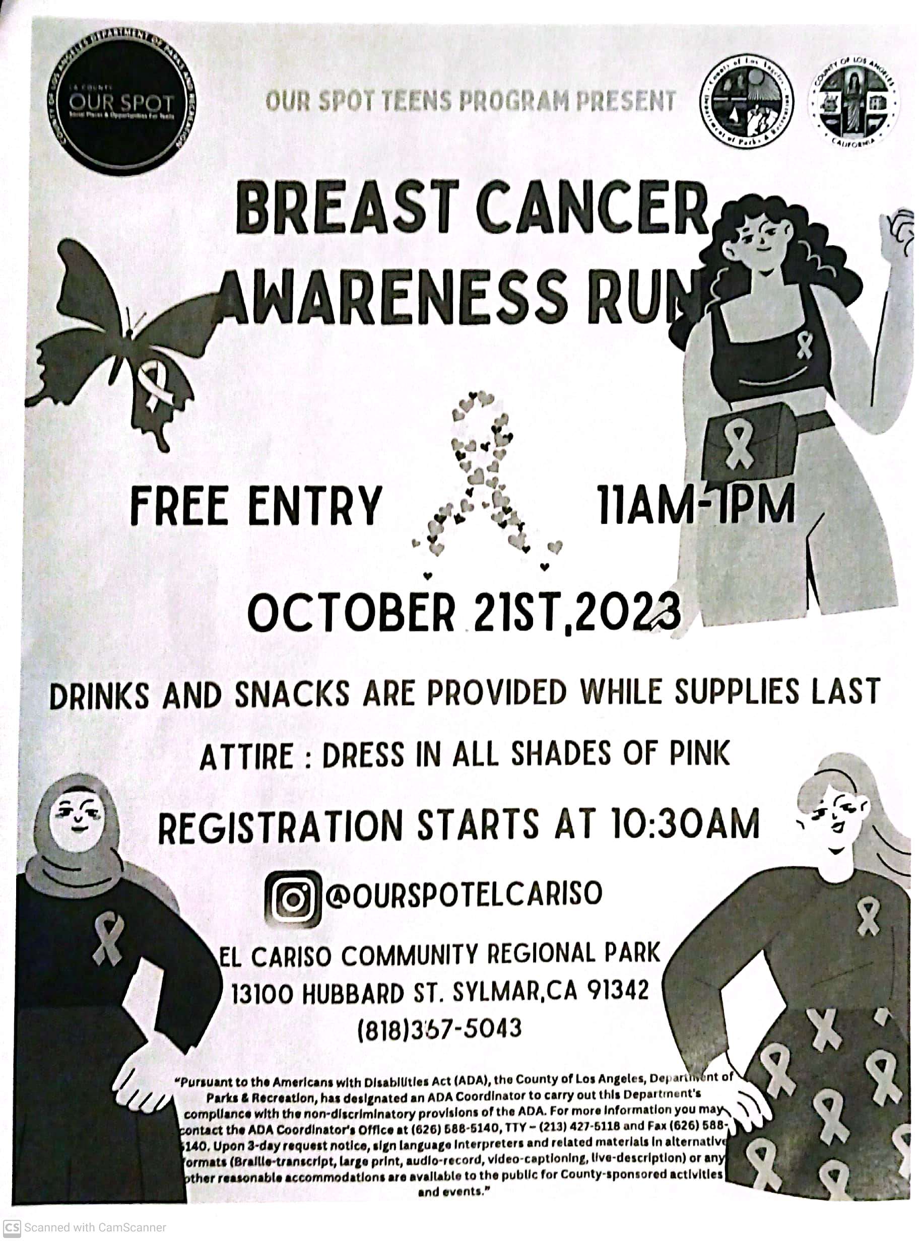 Wear PINK! Breast Cancer Awareness RUN! • October 21st 11:00am • El Cariso Park- 13100 Hubbard Street Sylmar, CA 91342