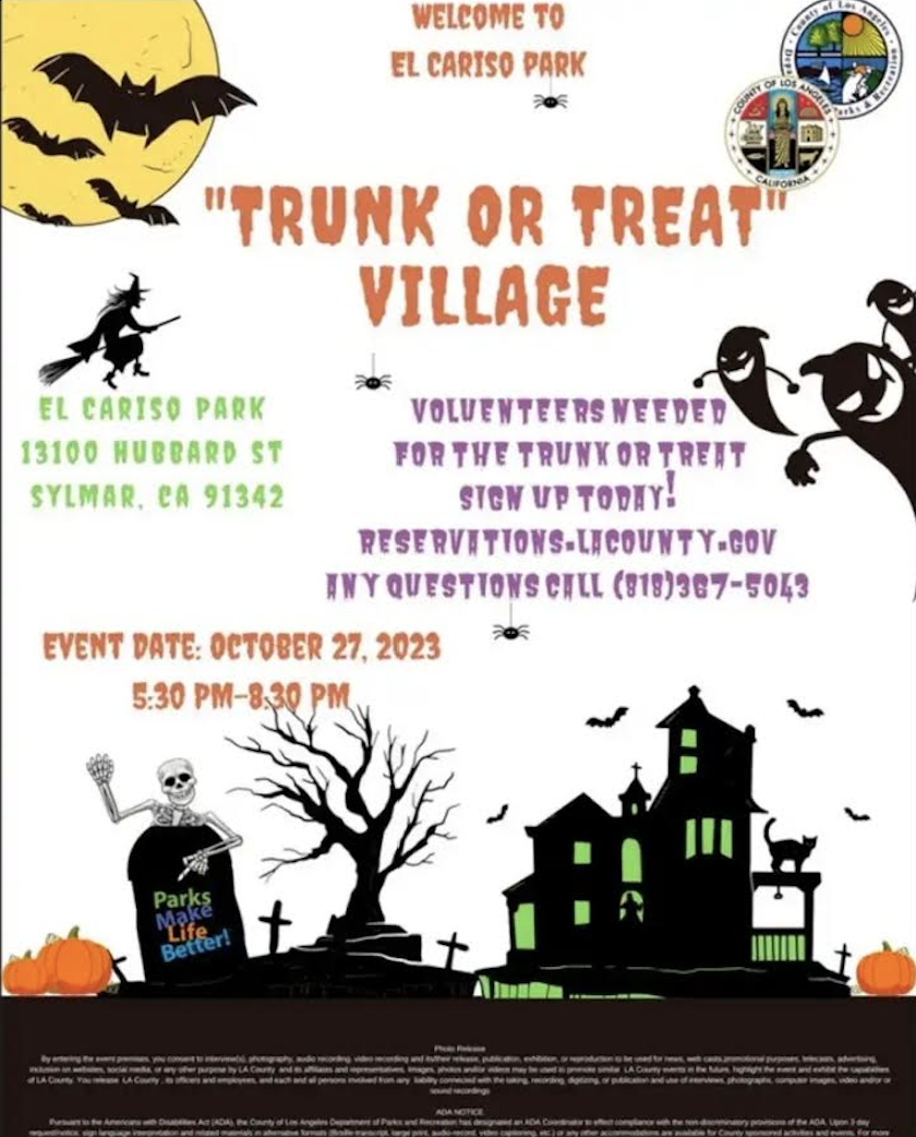 Come have a BOO-Wonderful Time at El Cariso Park's "Trunk or Treat" Village.