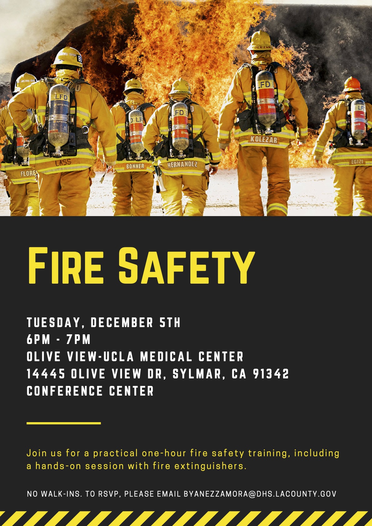 Olive View - UCLA Medical Center will be hosting a Fire Safety and Hands-on Fire Extinguisher Training on Tuesday, December 5th at OVMC in our Conference Center.