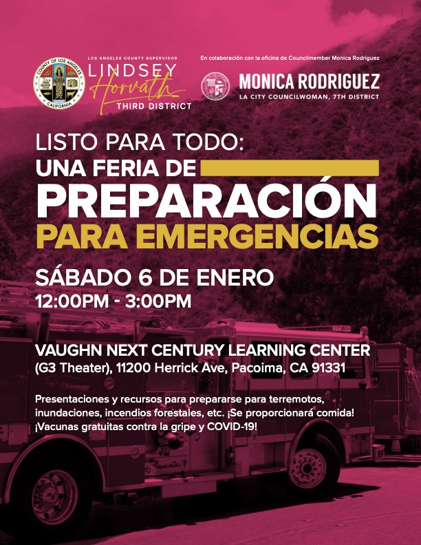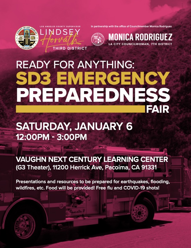 Presentations and resources to be prepared for earthquakes, flooding, wildfires, etc. Food will be provided! Free flu and COVID-19 shots!