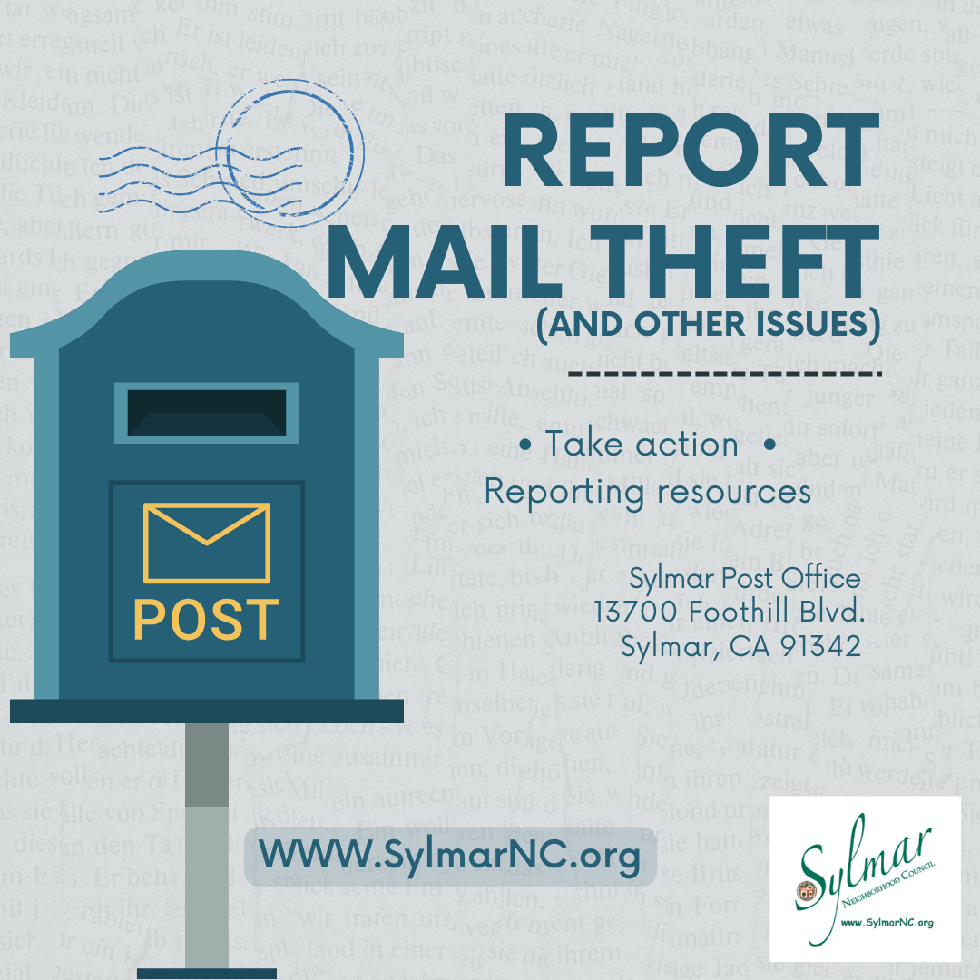If you witness or suspect mail theft or any other areas of concern that are related to our U.S. Postal Service.