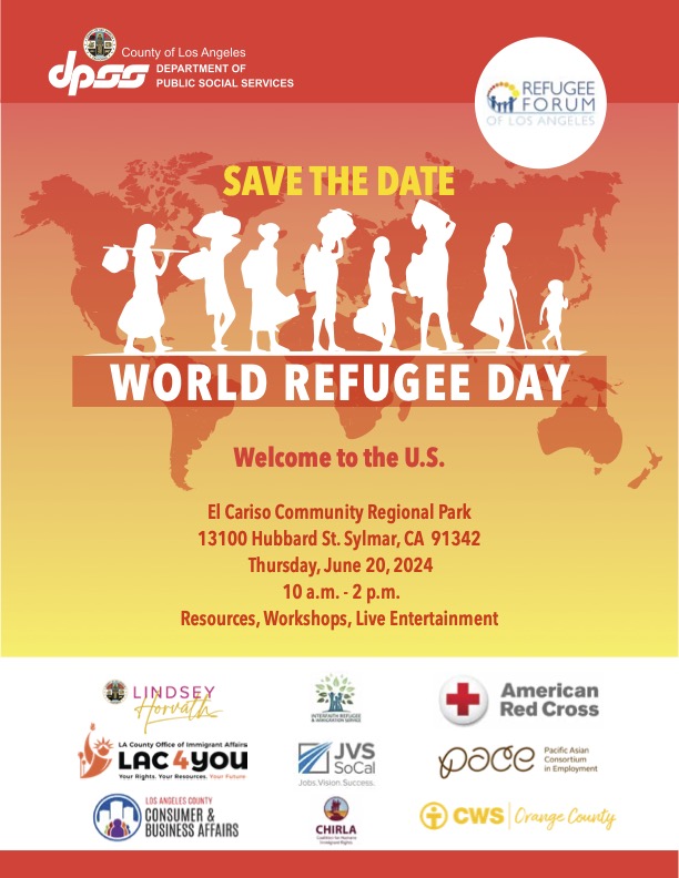 On Thursday, June 20, the Department will join its dedicated community partners in celebrating World Refugee Day at El Cariso Community Regional Park in Sylmar. DPSS staff will be onsite to provide enrollment assistance and information about all these essential programs available to the County’s refugee and asylee populations.