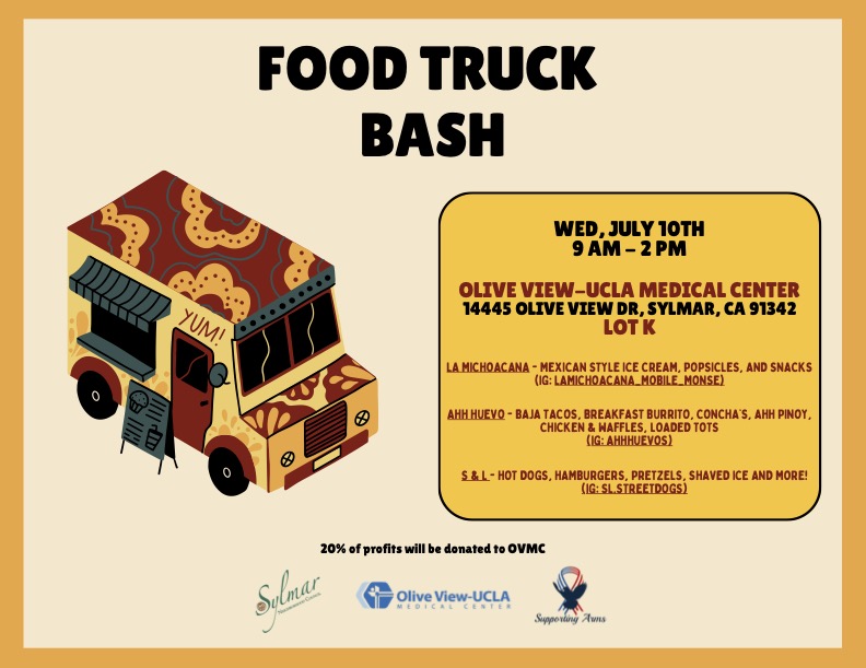 Come and enjoy the Food Truck Bash this Wednesday, JULY 10TH, 9 AM - 2 PM