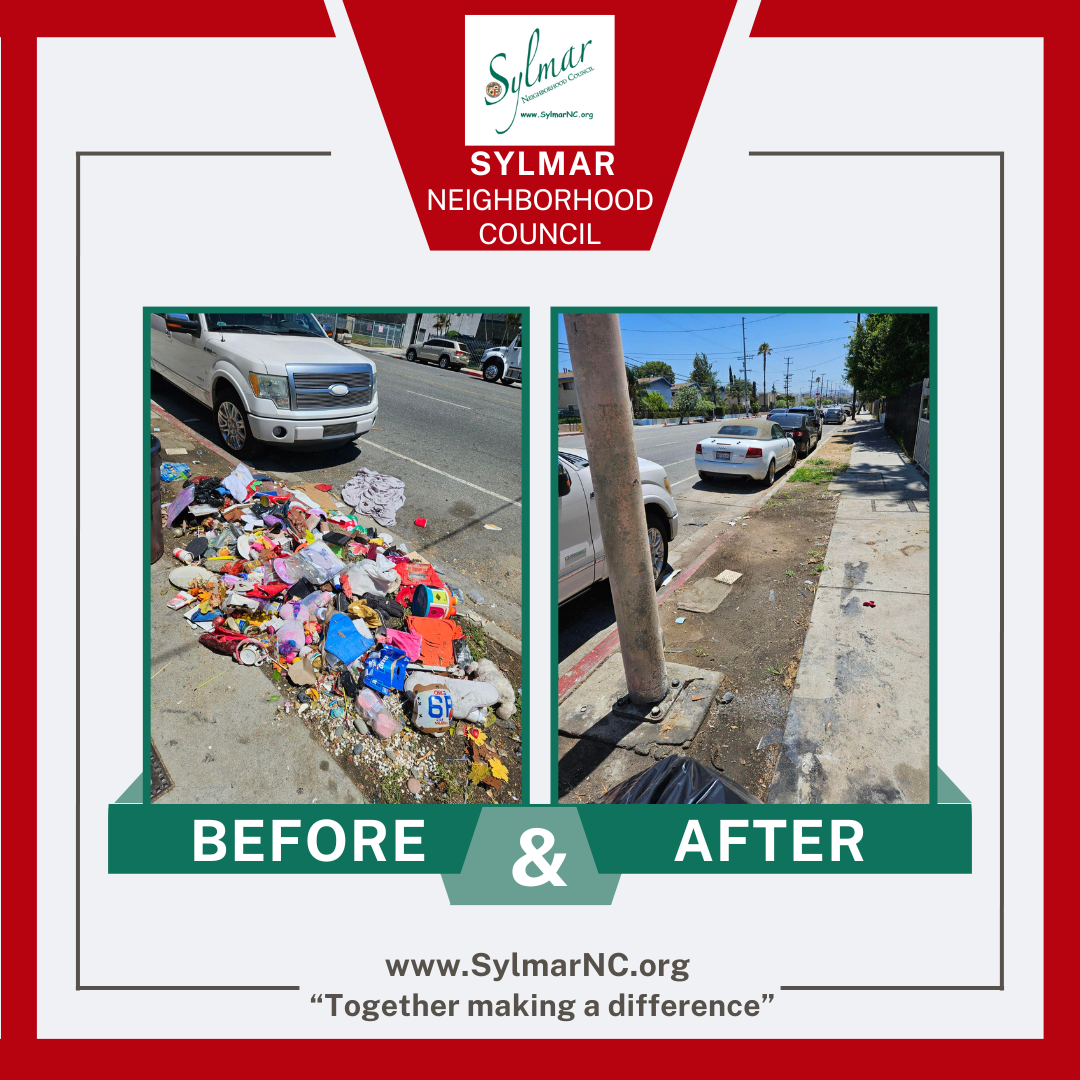 This colorful dumping site was no match for Sylmar's very own terrific Sylmarians Ray & Susan! You can see them all around our community cleaning, fixing, hauling, timing, the list goes on and on. All to beautify Sylmar.
