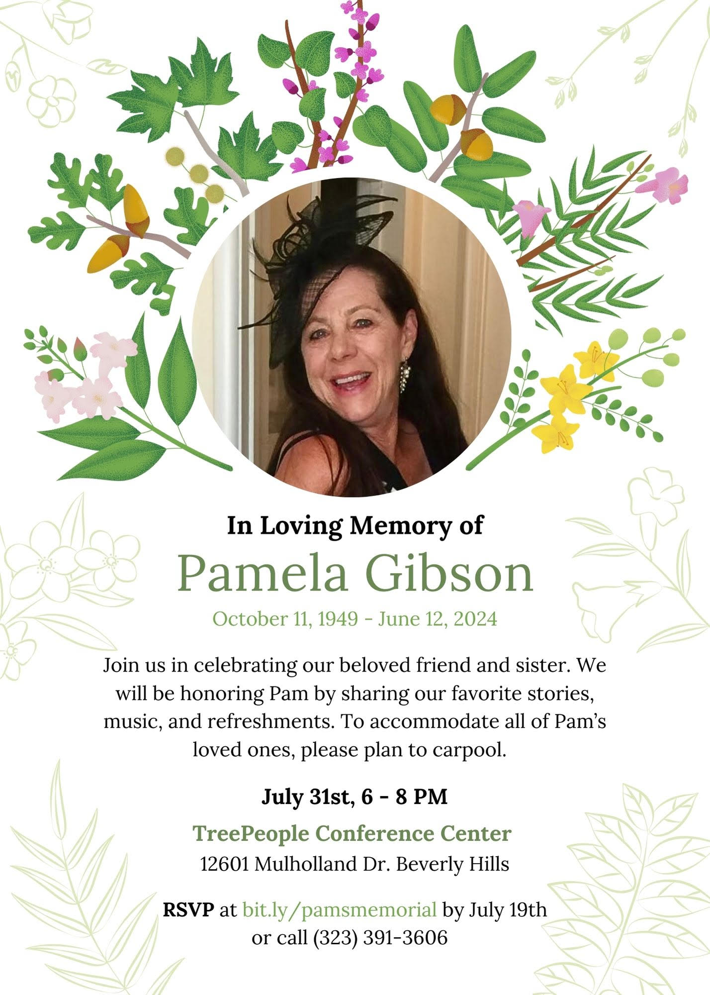 Pamela Gibson "Pam" was the Northeast Valley Regional Manager for TreePeople. She literally brought life to our community! Through her years of Service, she was responsible for bringing thousands of trees to our community of Sylmar.