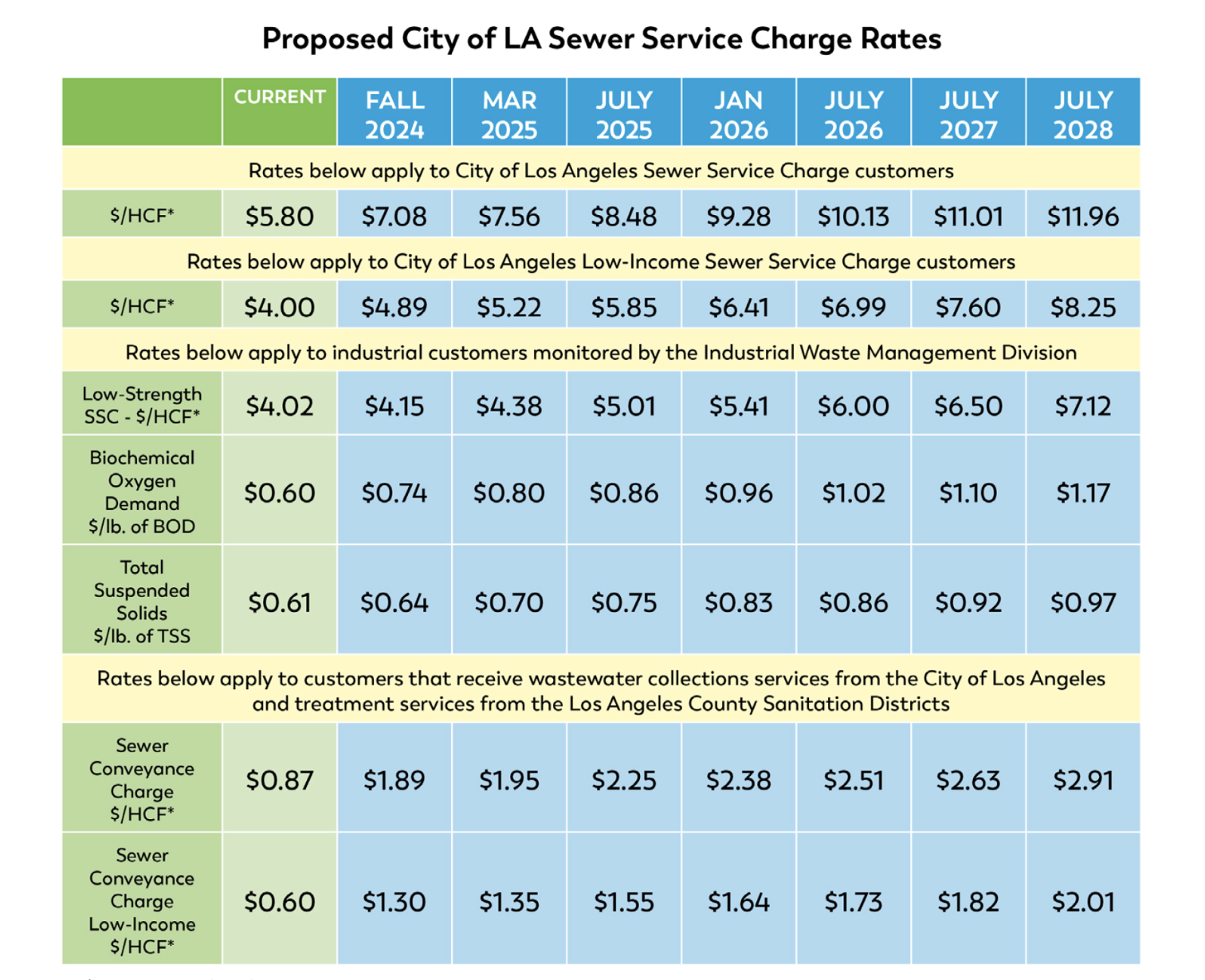 The City of Los Angeles is proposing a rate increase for its Sewer Service Charge (SSC). The funds bring needed updates to the city’s aging sewer system and go specifically toward the management, maintenance, and improvement of that system. Steady rate increases were paused in 2020 due to the pandemic.