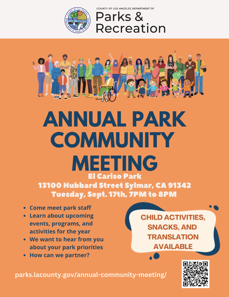 The LA County Parks & Recreation Department will hold their Annual Community Meetings across 66 parks throughout September. This is an opportunity for constituents to discover what’s new at local parks, explore program offerings, and provide valuable feedback.