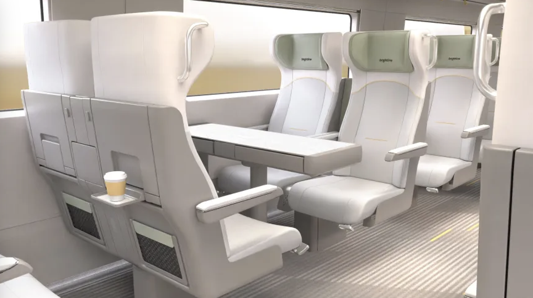“The propulsion system, lighter weight, and aerodynamic shape make it more efficient than other high-speed trains,” Brightline said.