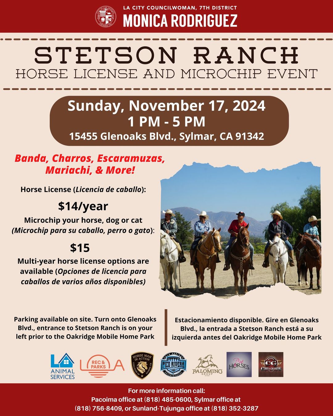 Councilwoman Rodriguez's Family-friendly Horse License & Microchipping event on Sunday, November 17, from 1 PM to 5 PM.