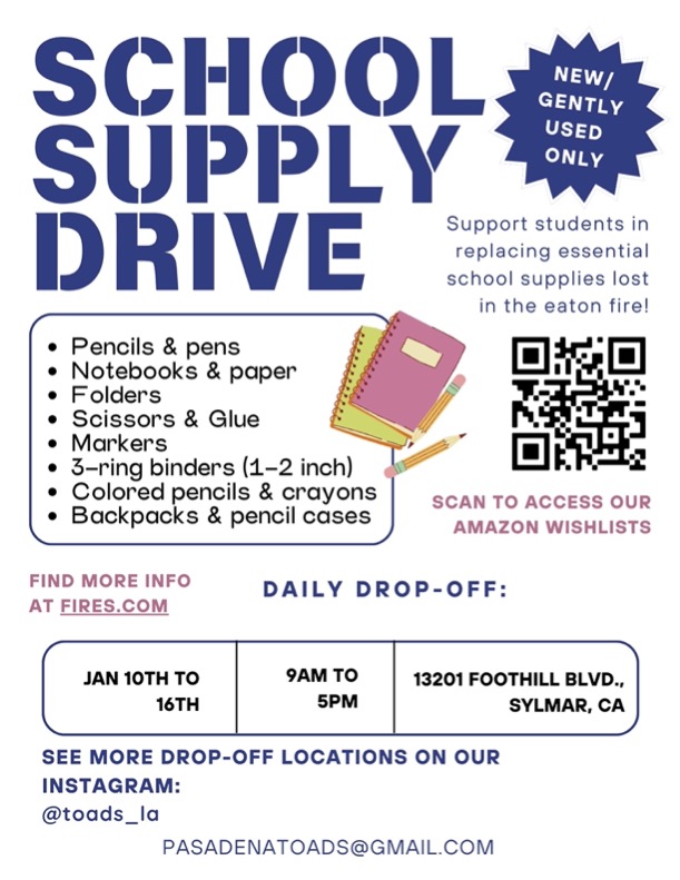 Items will be delivered directly to both private and public Altadena and Pasadena school coordinators.
