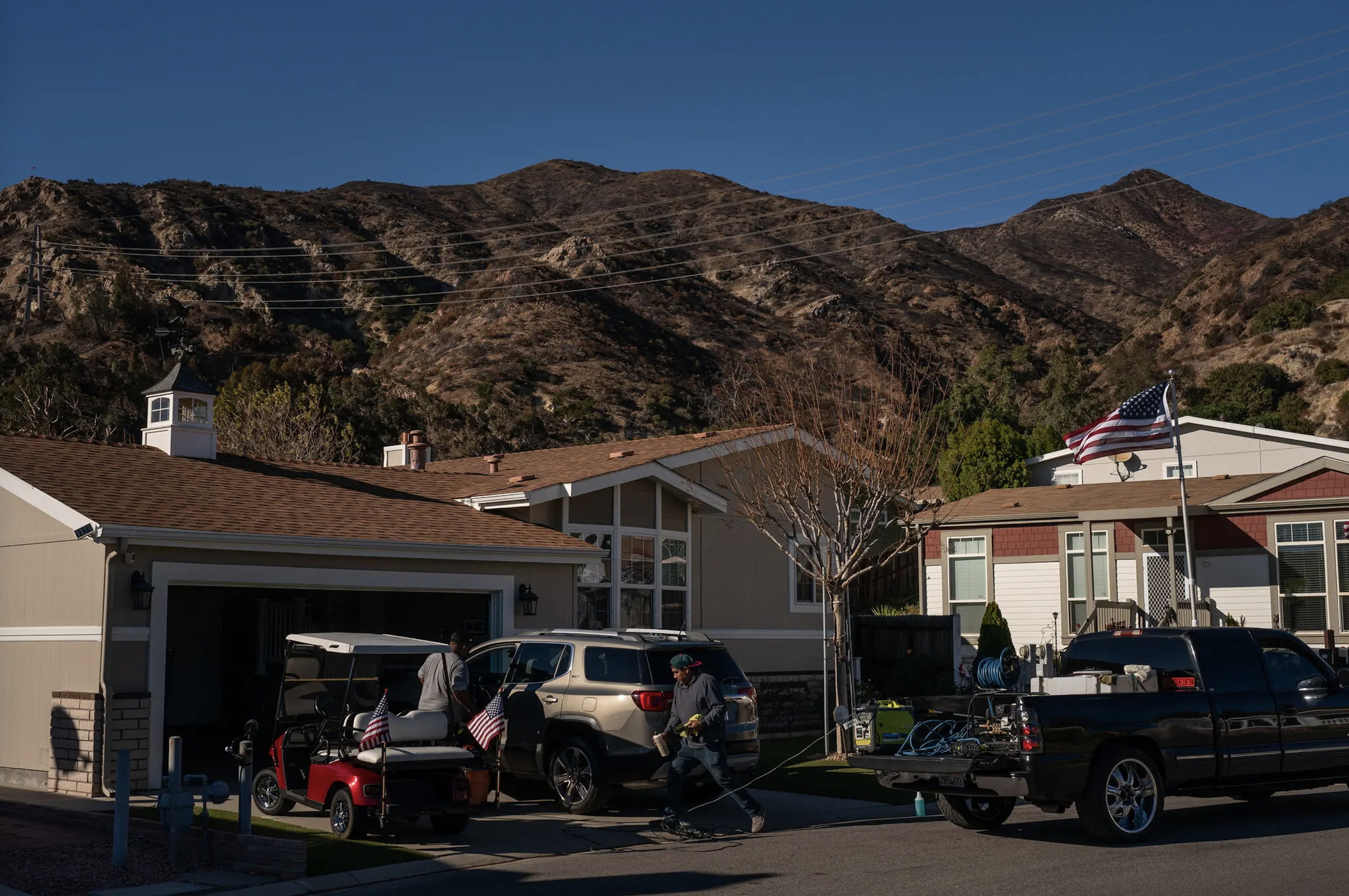 Patches of burned vegetation ended disconcertingly close to backyard fences. Large swathes of red fire retardant painted the mountainside behind Rancho Cascades, another Sylmar neighborhood.
