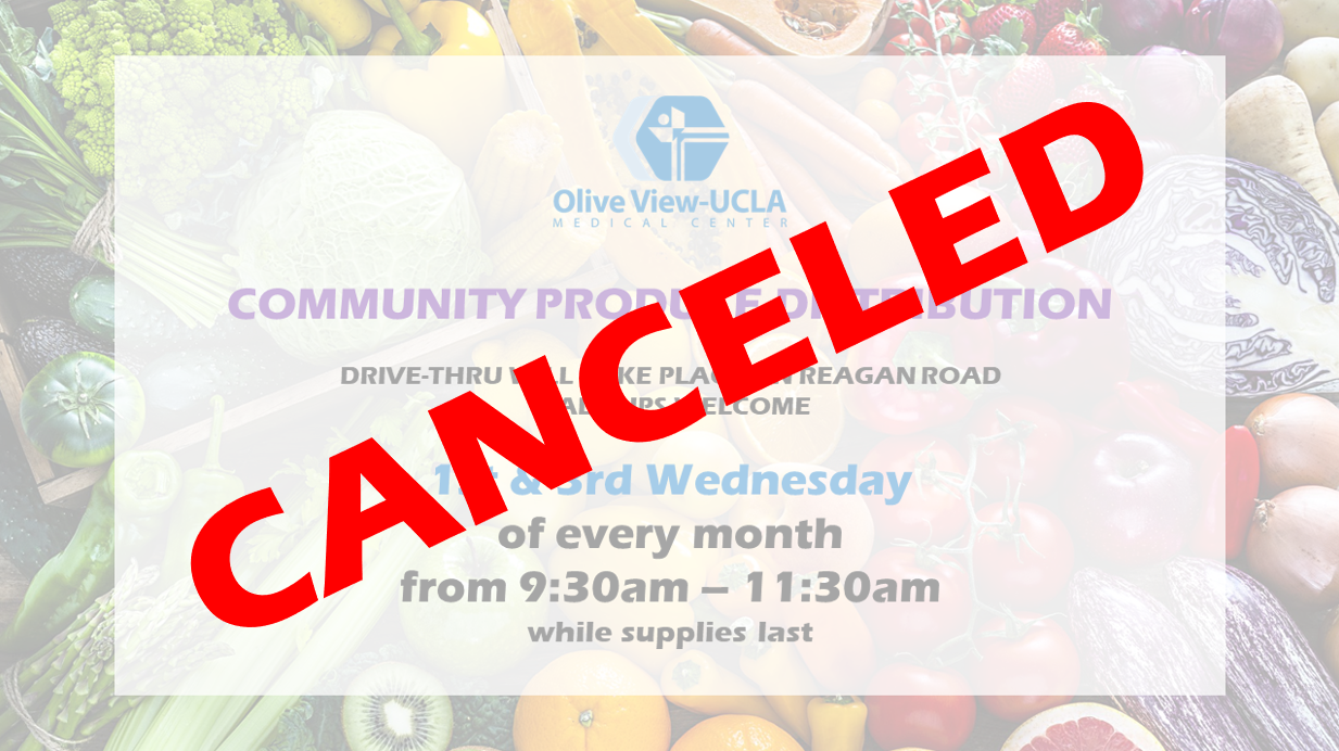 Due to expected High Winds the Produce Distribution at Olive View/UCLA on Wednesday, January 15th, is CANCELED.