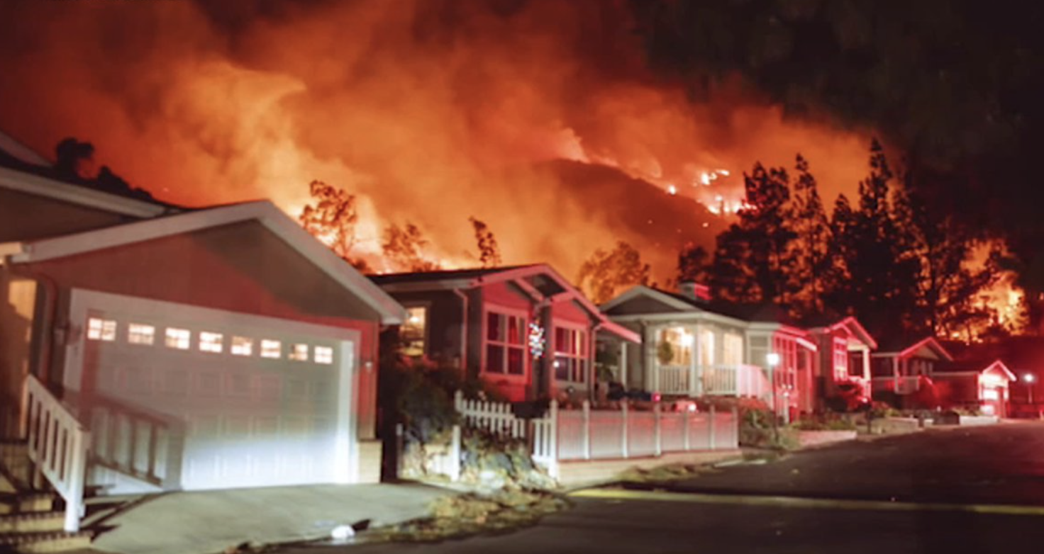 Oak Ridge Mobile Home Park sits at the edge of the Hurst Fire burn zone, where the Saddleridge Fire also erupted in 2019. Investigators confirmed the 2019 blaze began underneath a high-voltage transmission tower.