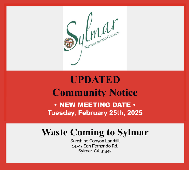 NEW Meeting Date Community Notice - Waste coming to Sylmar Landfill https://myemail.constantcontact.com/UPDATED-SYLMAR-COMMUNITY-NOTICE-.html?soid=1118491727157&aid=evEx7qsW3I0
