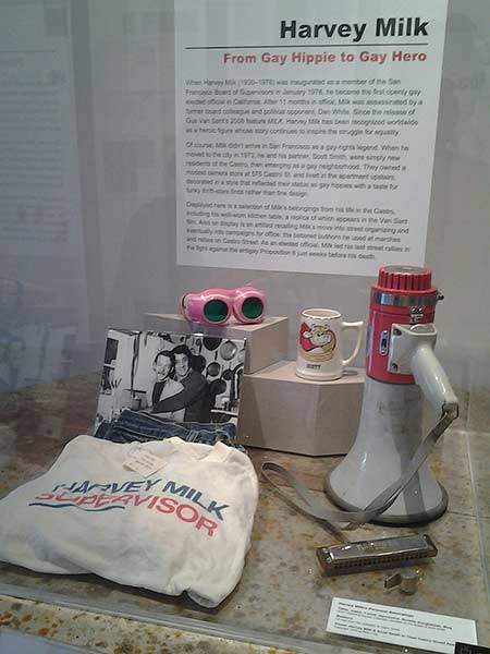 Harvey Milk's Bullhorn amongst other artefacts, on display in the 'Our Queer Past: A Celebration OF San Francisco's LGBT History' exhibition at the GLBT History Museum