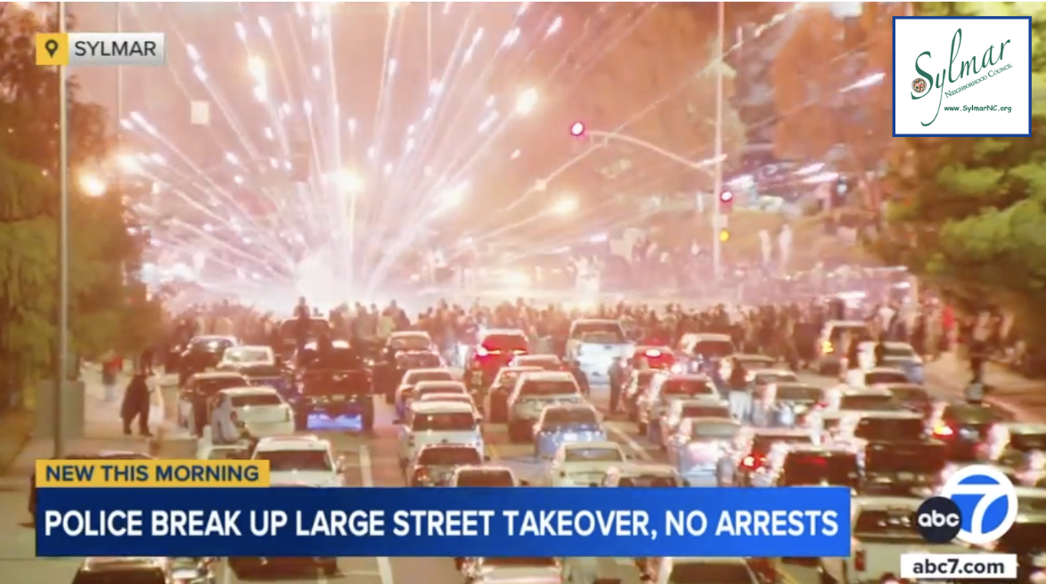 SYLMAR, LOS ANGELES (KABC) -- New video shows a wild scene at a street takeover in Sylmar that brought out dozens of people.