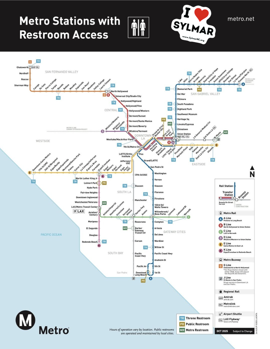 Behold, our updated system map showing stations where public restrooms are available. Our system is very big with some long rides -- we know that sometimes when you Go Metro, the 'go' part is a consideration.