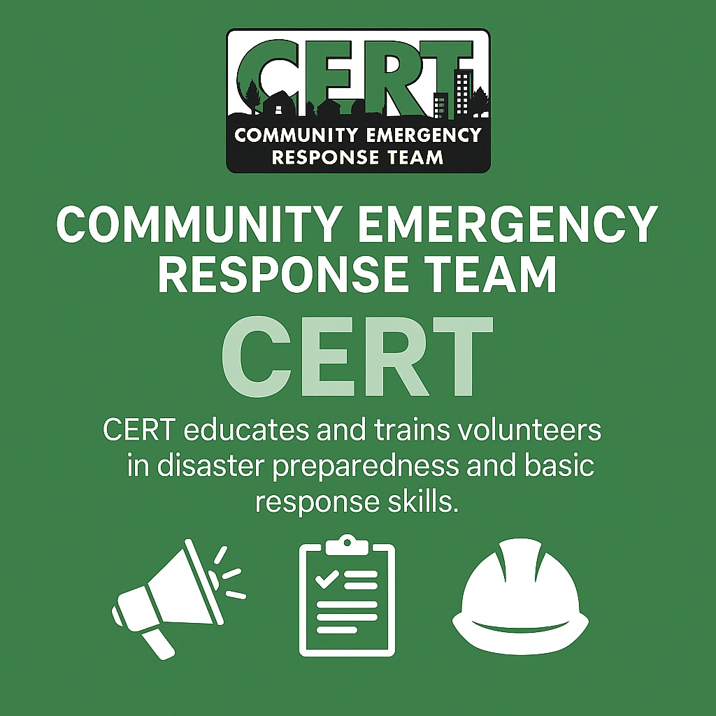 CERT (Community Emergency Response Team) training teaches you how to respond safely, responsibly, and effectively in the event of a disaster.