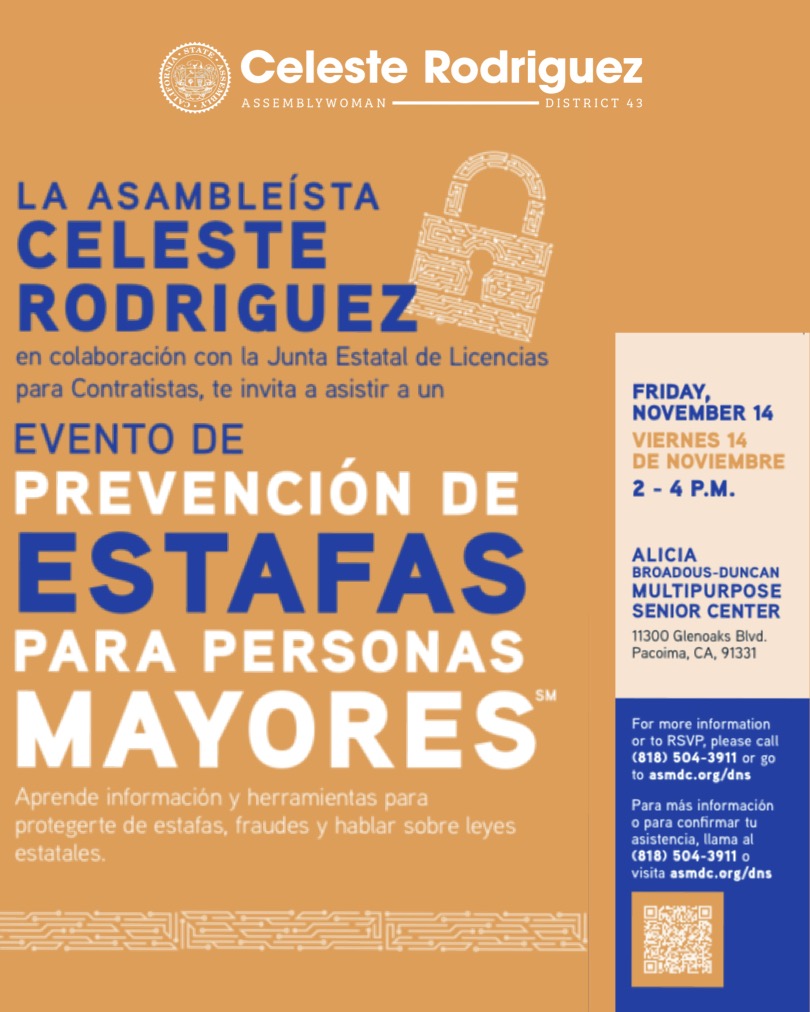This free event will feature presentations from the Contract State License Board, California Privacy Protection Agency, Department of Financial Protection and Innovation, and Bureau of Household Goods and Services. Attendees will receive practical tips on recognizing and avoiding scams, along with access to local resources that offer ongoing support.