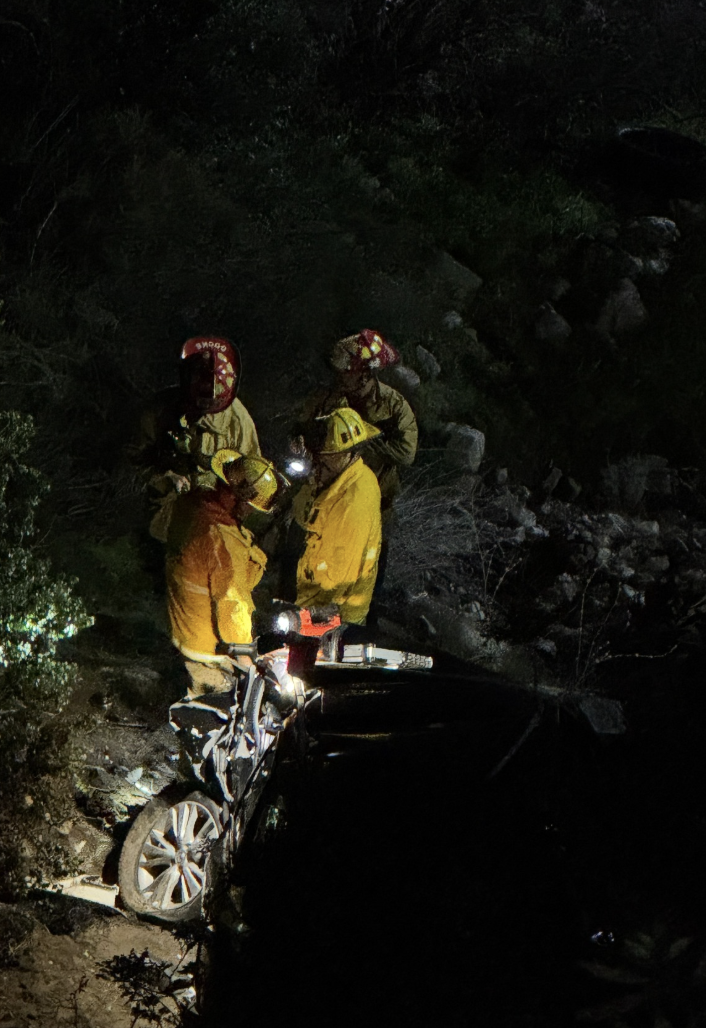 Early this morning (11/23/25)4:22 a.m. to 13119 N. Kagel Canyon Road, the Los Angeles Fire Department reported that LAFD and LA County Fire personnel worked side-by-side to rescue two people after their vehicle fell approximately 70 feet over the side of a cliff in Kagel Canyon.