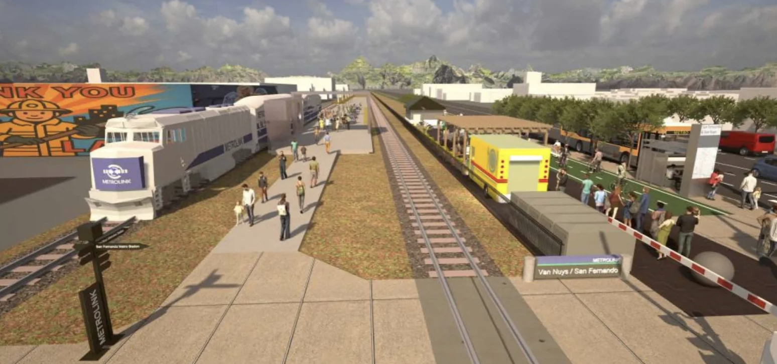 Rendering of proposed Pacoima Metrolink Station at the intersection of Van Nuys Boulevard and San Fernando Road. (Courtesy of Metro)