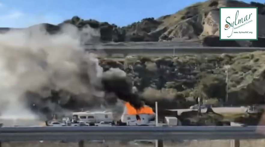 Crews were called to the area of Sierra Highway and San Fernando Road at 1:41 p.m. Due to the potential danger of the situation, first responders let the tank burn out as they monitored the scene.