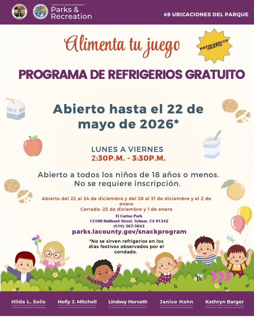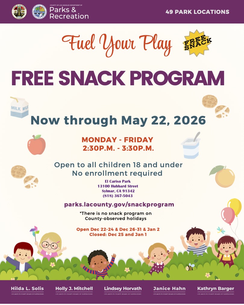 Snack Program at El Cariso Park, 13100 Hubbard St., Sylmar, CA 91342
