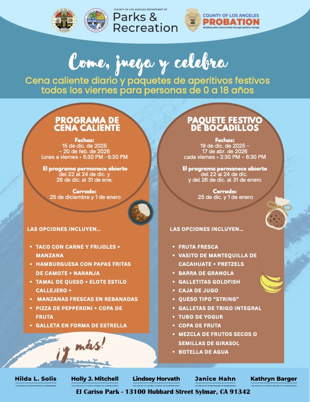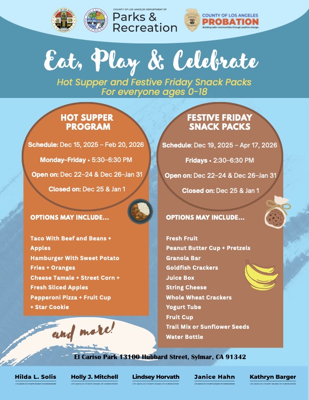 Hot Supper Program • Snack Pack Program • El Cariso Park