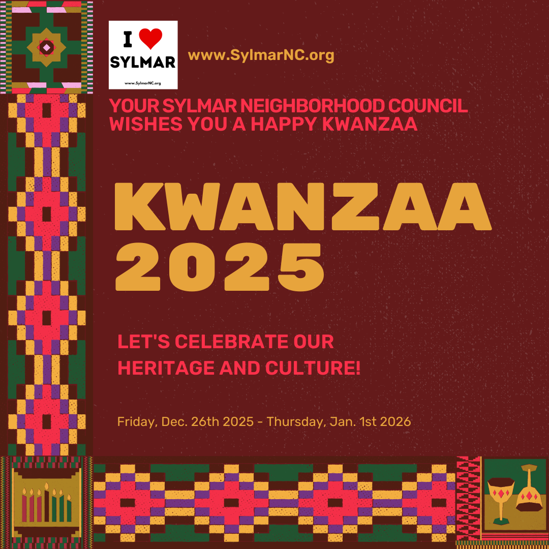 The Sylmar Neighborhood Council wishes you a happy Kwanzaa.