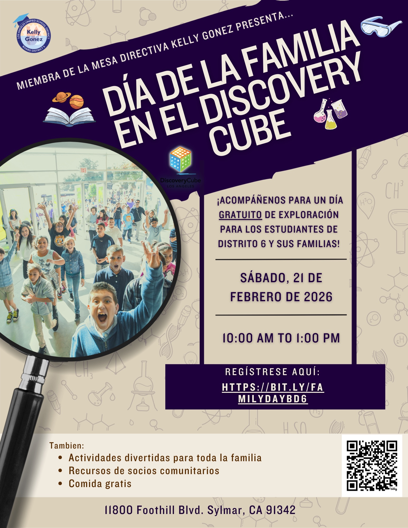 We’re excited to invite families in our community to join us for a BD6 Family Day at the Discovery Cube on Saturday, February 21, 2026! This will be a fun, interactive community event open to families in our district.